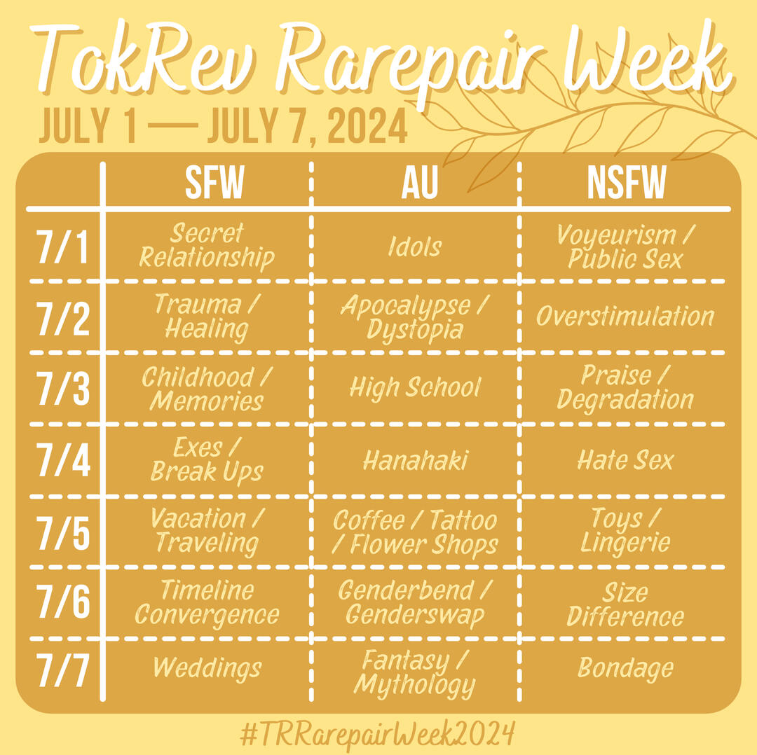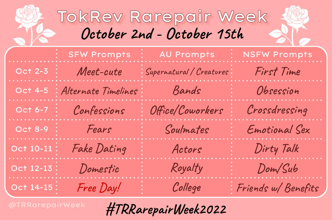 | Dates | SFW Prompts | AU Prompts | NSFW Prompts |